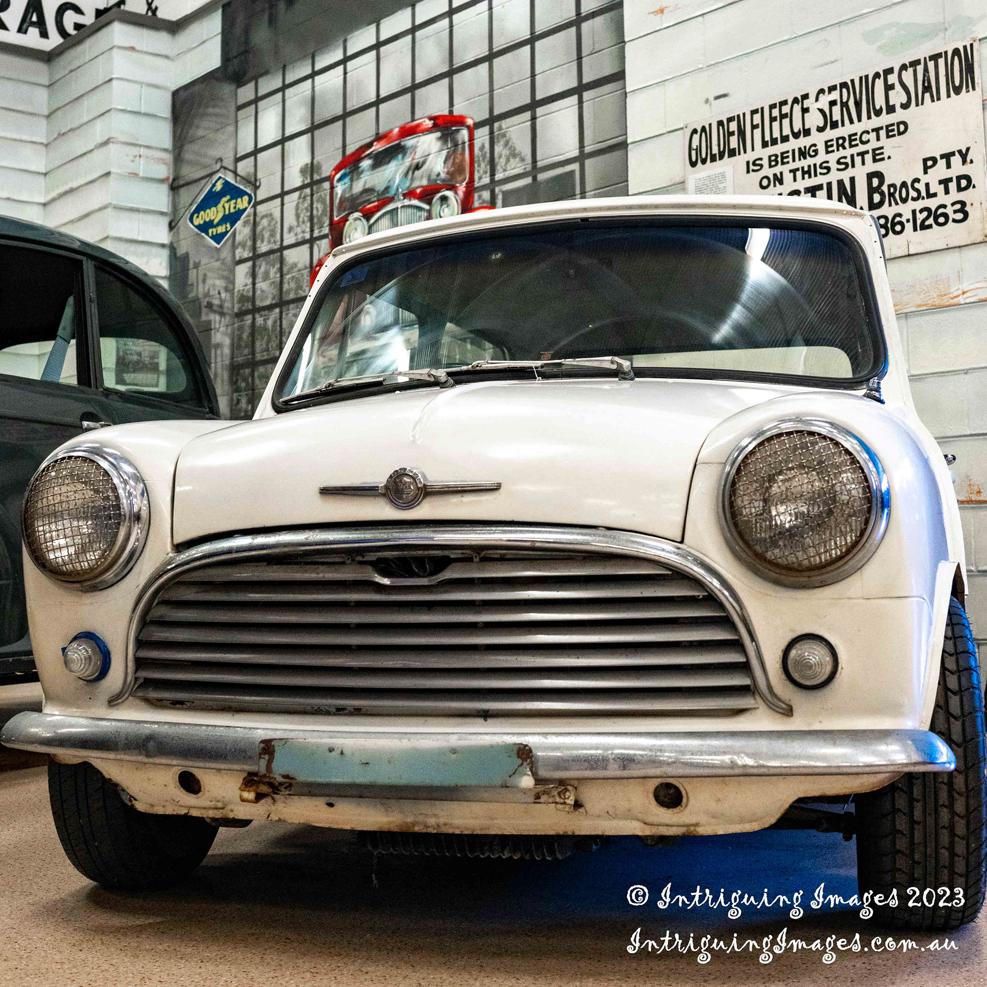 A 1965 Morris Mini Deluxe at the Redland Museum in Cleveland